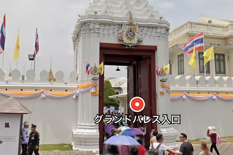 この入口の名前は、ウィセーチャシー門(Wiset Chai Si Gate)です。ワットポーから行く際に、Google Map にコピペして、この門を目指しましょう。