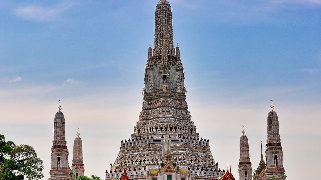 ワット・アルン(暁の寺)は、バンコクのチャオプラヤ川西岸にそびえる美しい寺院です。