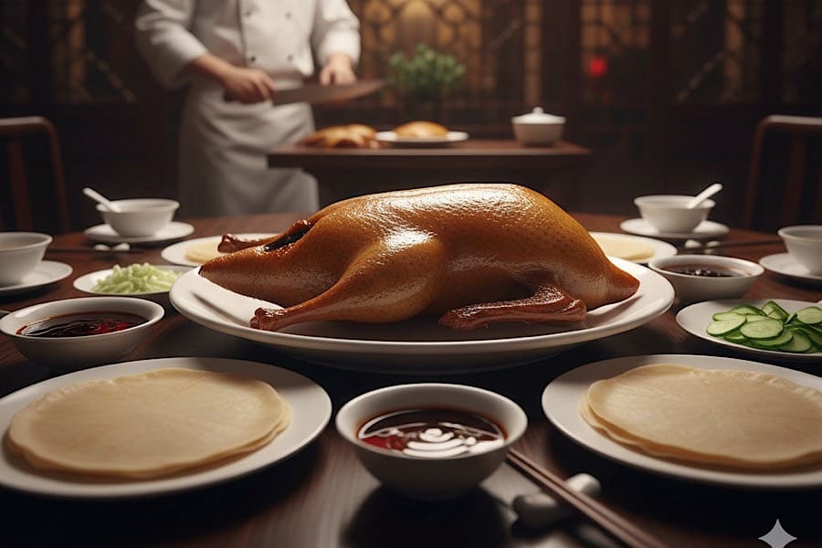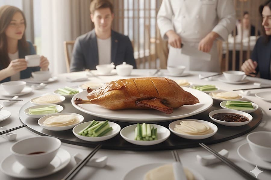 - カットを間近で見れる!: 焼き上がったダックをワゴンでテーブル近くまで運び、シェフがその場で華麗に切り分ける「片鴨(ピエンヤー)」のパフォーマンスは必見です。