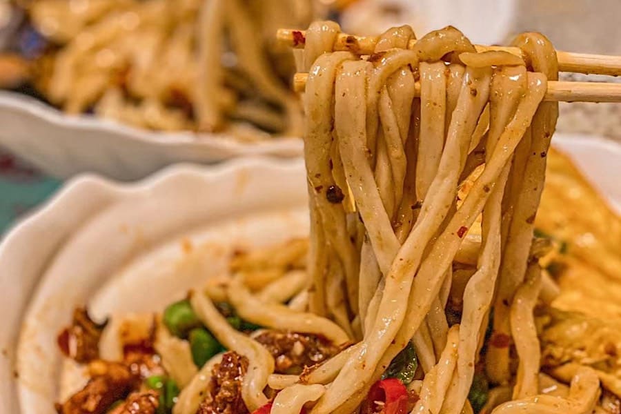 「重慶のストリートフードをそのまま再現」しており、容赦ない辛さと痺れが特徴。特に「豌雑麺(ワンザーミェン)」は、ホクホクに煮込まれたえんどう豆と肉味噌が麺に絡みつき、一度食べると中毒になります。おしゃれな商業施設(太古里西区)の中にあり、清潔感も抜群です。